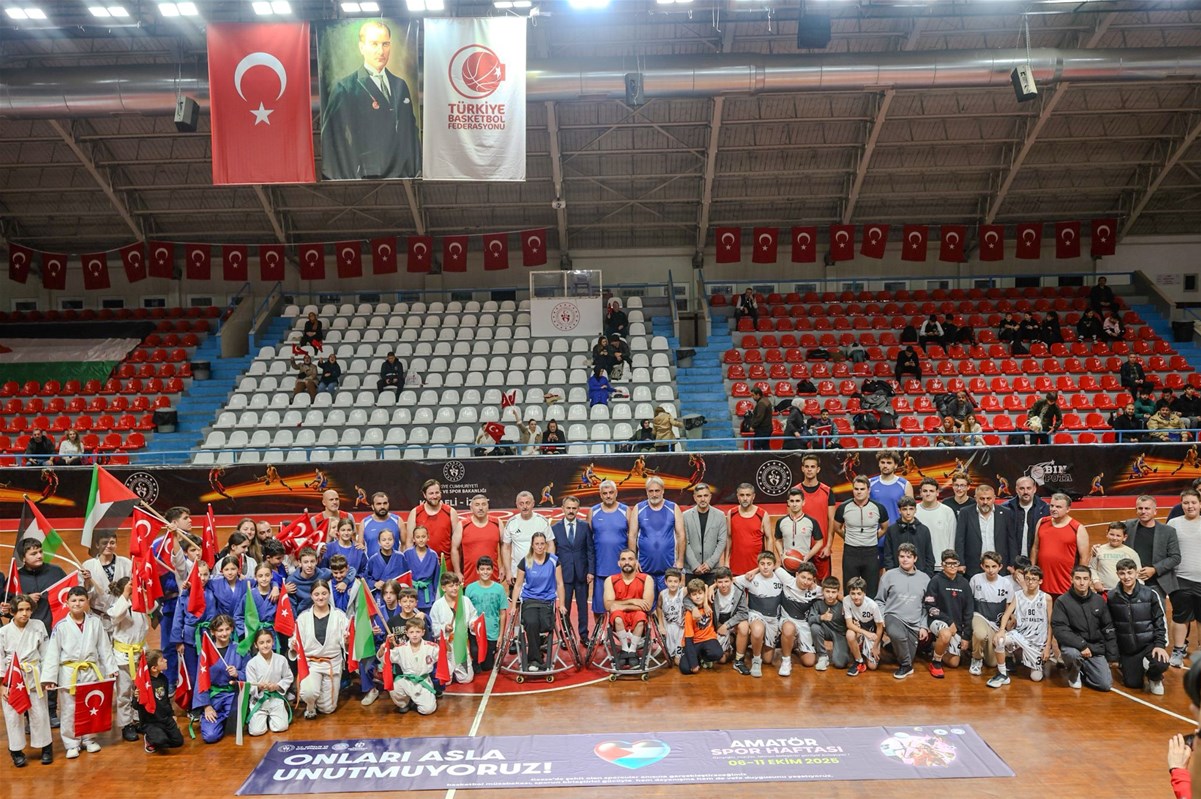 İzmit Atatürk Spor Salonu’nda düzenlenen basketbol müsabakası, sporun birleştirici ve barışçıl ruhunu yansıtırken, Gazze’de hayatını kaybeden sporcuların hatırasına vefa niteliği taşıdı.