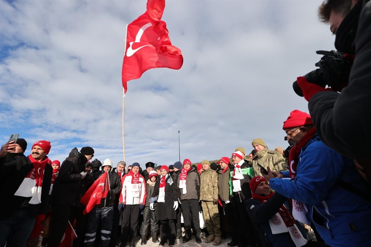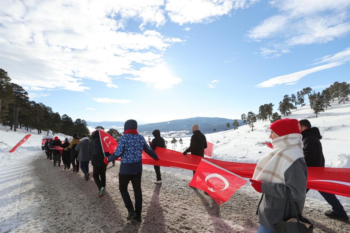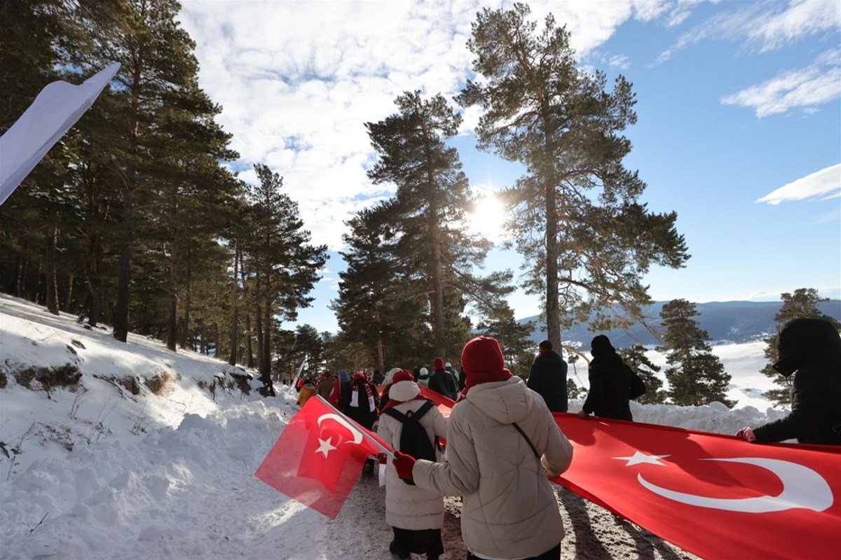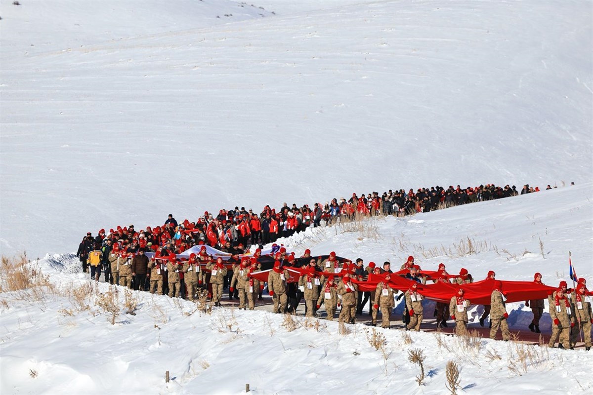 Kent merkeziyle Sarıkamış ilçesinden otobüslerle zirveye ulaşan katılımcılar, Türk bayraklarıyla yürüyerek toplanma alanına geldi. Vatandaşlar, Kızılçubuk bölgesinde şehitler anısına yapılan kardan heykellerin önünde fotoğraf çektirdi.