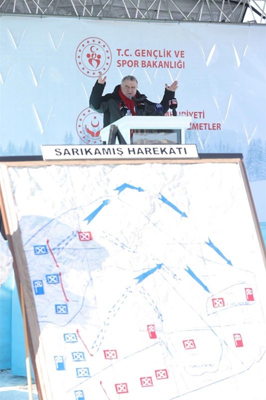 Bakanlık olarak geçen yıl Çanakkale'ye Türkiye'nin dört bir yanından 110 bin genci götürdüklerini anlatan Bakan Bak, "Bir ülkenin değerlerini gençlere nasıl kazandırırsınız diye söylüyorlar. İşte bu millet tarafından verilmiş destansı mücadeleyi anlatmak gerekiyor. İşte bunların en büyük örneklerinden bir tanesi Sarıkamış. Çetin hava şartlarında, zor şartlarda gerçekleştirilen bir harekat ve bu harekatta karşılaşılan doğa üstü güçler, soğuk, buz, mermi gibi kar yağışı ve bütün bunlara göğüs geren bir millet ve ordu. O yüzden bu heyecanı, azmi ve coşkuyu görmek gerekiyor." ifadelerini kullandı.