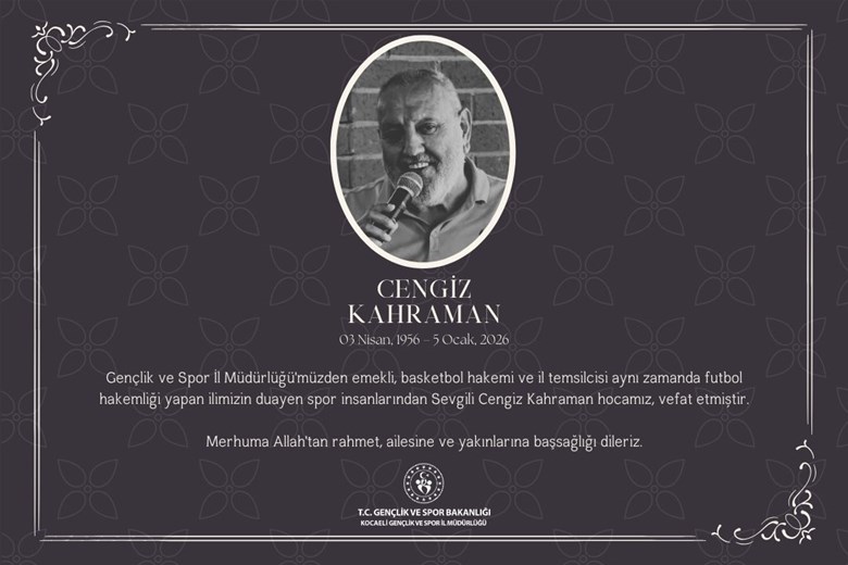 Gençlik ve Spor İl Müdürlüğü'müzden emekli, basketbol hakemi ve il temsilcisi aynı zamanda futbol hakemliği yapan ilimizin duayen spor insanlarından Sevgili Cengiz Kahraman hocamız, vefat etmiştir.
